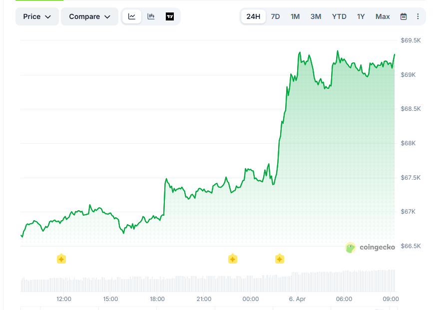 Лидером роста стал биткоин, вновь превысивший отметку в $69,000 после выходных с колебаниями ниже $67,000. Однако цена BTC по-прежнему находится в двухмесячном боковом канале.