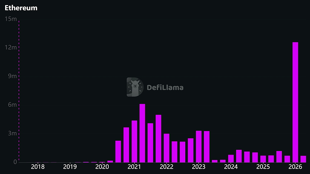 В первом квартале 2026 года блокчейн Ethereum (ETH) зафиксировал рекордное количество квартальных транзакций с момента своего запуска.