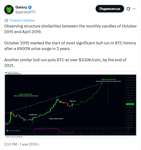 Популярный криптовалютный трейдер Galaxy выдвинул предположение, что к концу 2021 года мы увидим рост цены BTC до $330,000.
