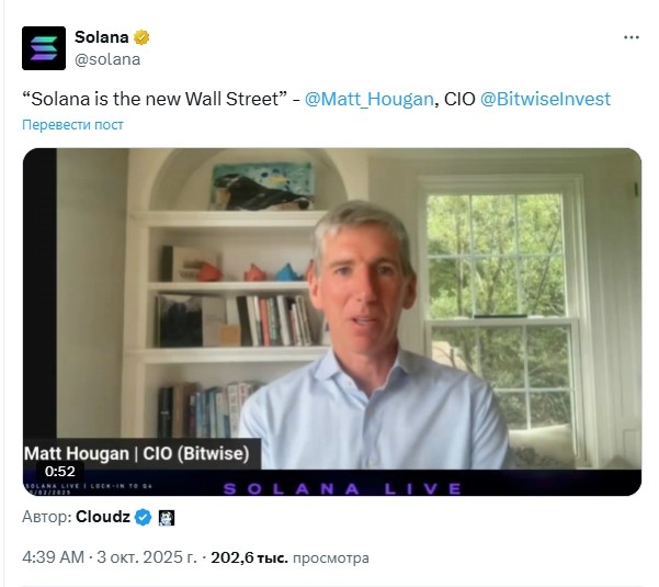 Директор по инвестициям Bitwise Мэтт Хоуган считает, что блокчейн Solana подходит для Уолл-стрит, поскольку организациям необходима масштабируемая инфраструктура для поддержки следующего этапа цифровых финансов.