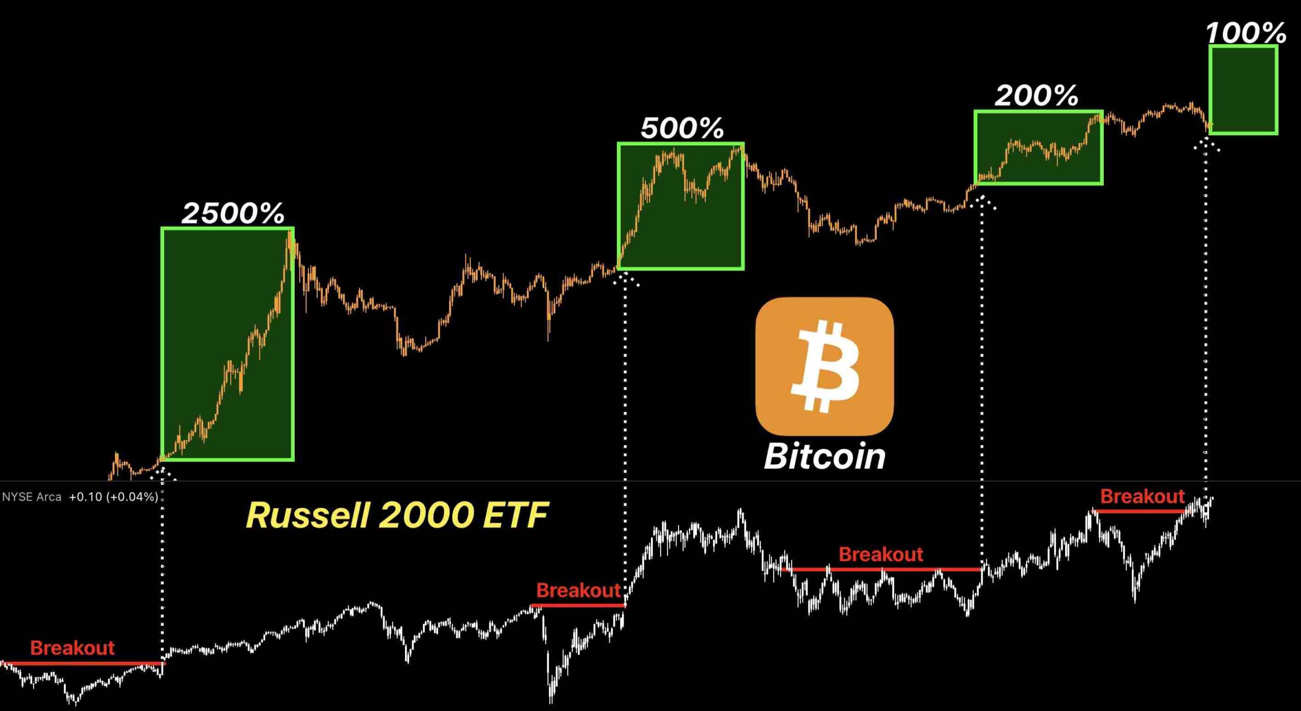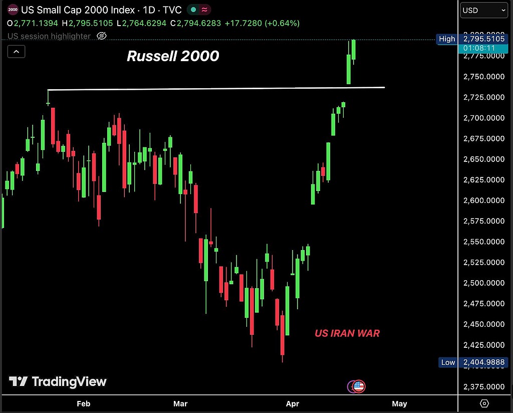 Аналитики отметили, что индекс Russell 2000 преодолел зону сопротивления, которая удерживалась в течение пяти лет. Исторически индекс часто двигался с четырёхлетним циклом. На этот раз прорыв занял пять лет, что делает это движение особенно примечательным.