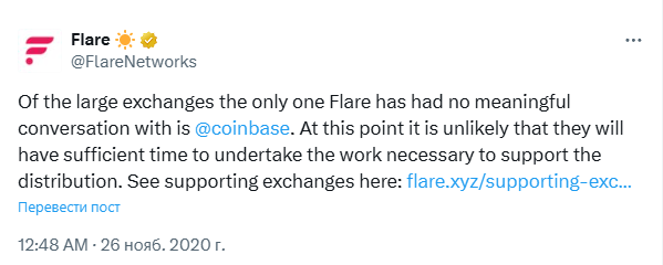 Poloniex и KuCoin присоединились к Binance, которая уже сделала аналогичное заявление. Команда Flare Networks также уведомила сообщество XRP, что у биржи криптовалют Coinbase будет достаточно времени для подготовки к мероприятию.