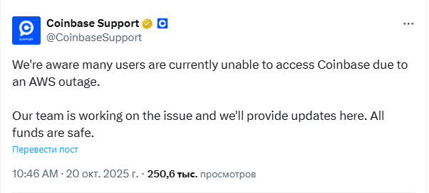 Robinhood и Coinbase, использующие серверы AWS для обработки данных и транзакций, также сообщили о временных ограничениях к торговле или просмотру информации в аккаунтах.