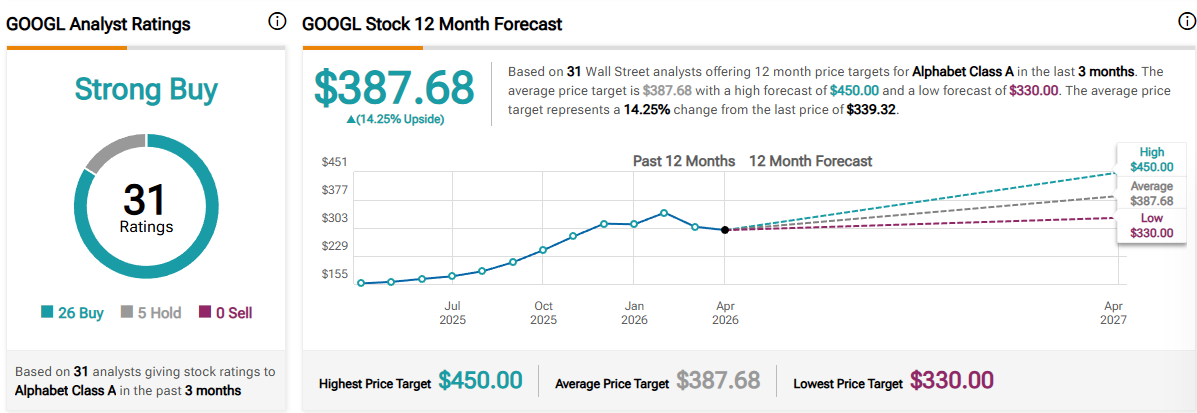 С учётом этих обстоятельств Джим Крамер назвал 23 апреля целевую цену акций GOOGL в $400 гарантированной. И в данном случае мнение популярного телеведущего совпадает с экспертами Уолл-стрит, правда их прогноз несколько ниже — $387,68.