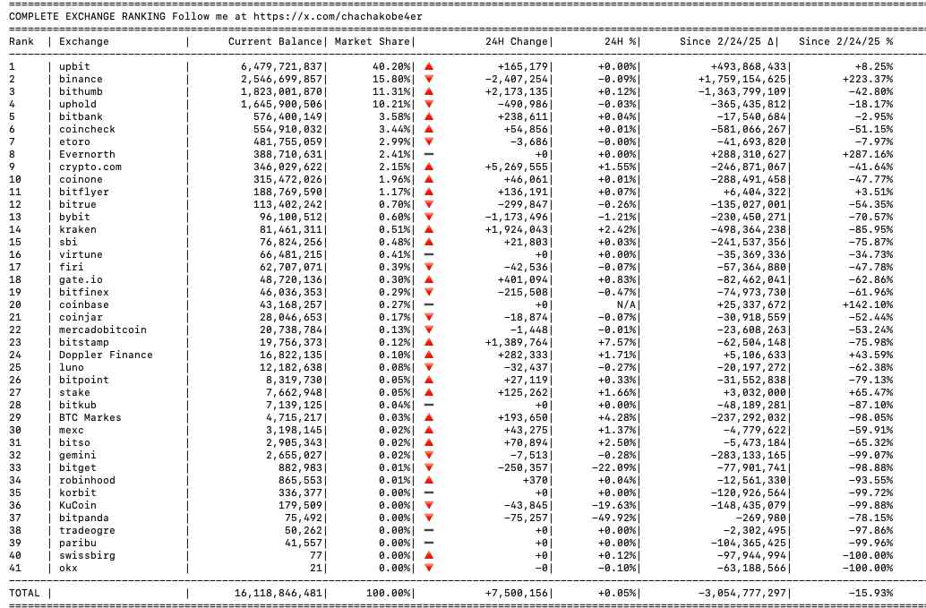 Предложение XRP на 41 ведущей криптовалютной бирже. Источник: @Chachakobe4er